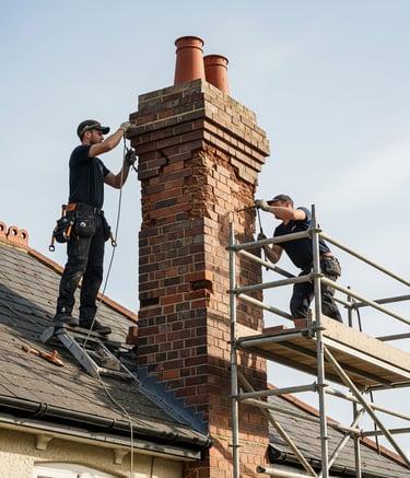 Full Chimney Rebuild (Partial Stack) - Replacing a significantly damaged top section (above the roofline) due to frost spalling or age. $2,500 – $6,000+